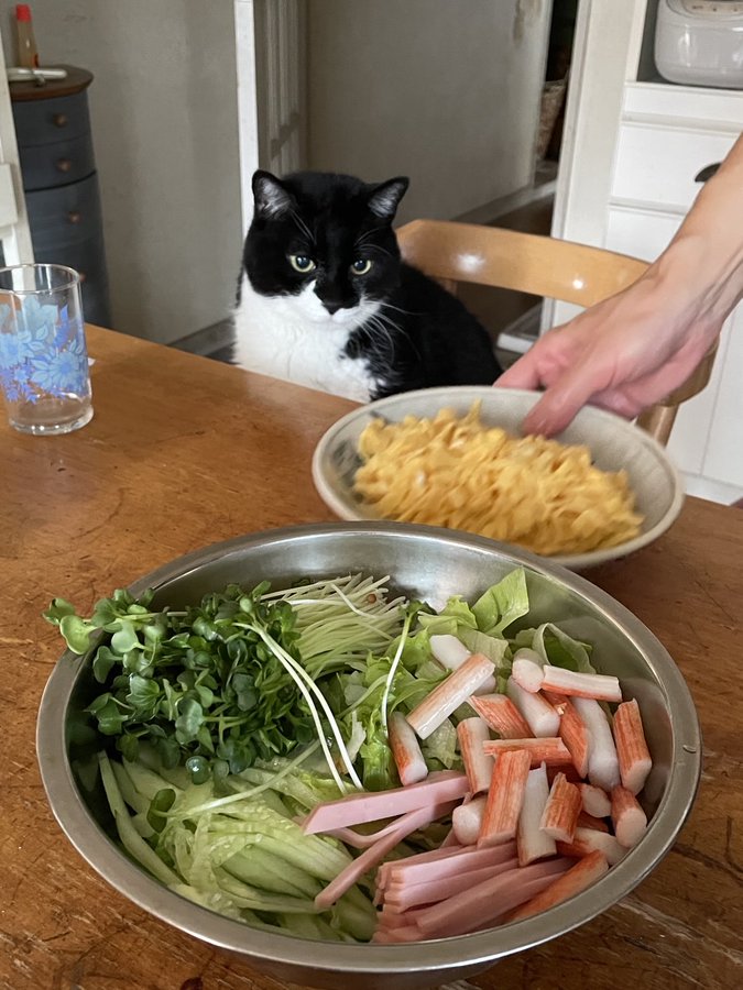 作家塾前にPDが作ってくれてます。猫には何の関係もないはずです。10月ですが、未だ冷やし中華食べたい心境です。来春撮影予定の脚本「夢之美人画」は85%の出来上がりでしょうか。