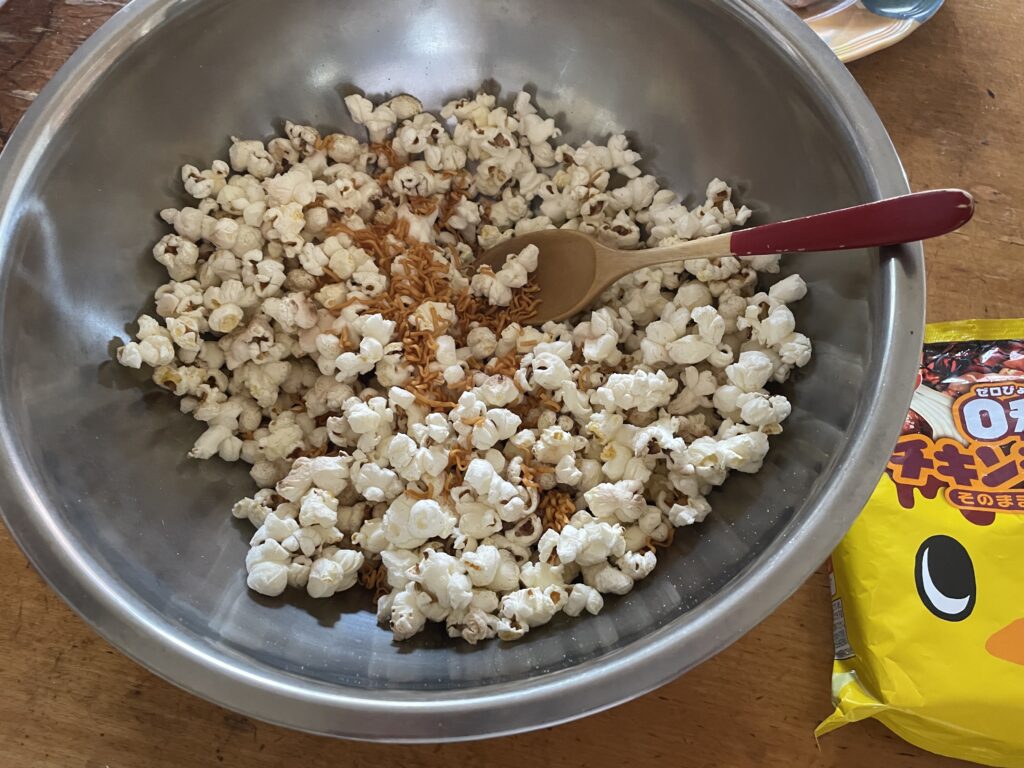 ポップコーンと0秒チキンラーメン