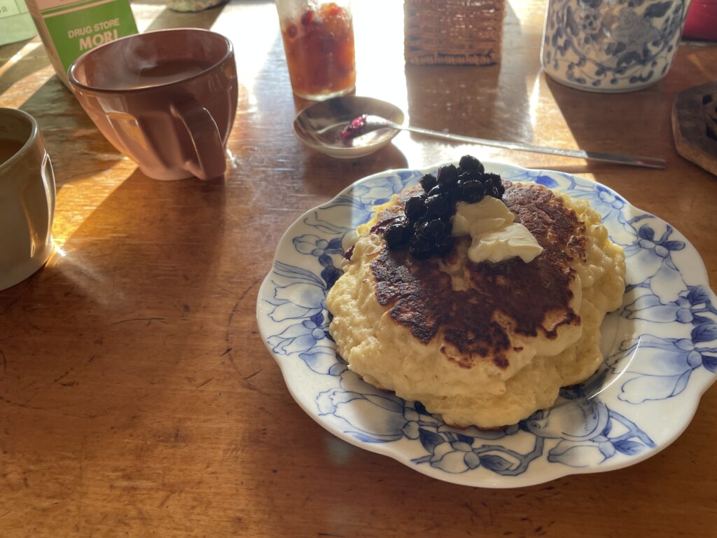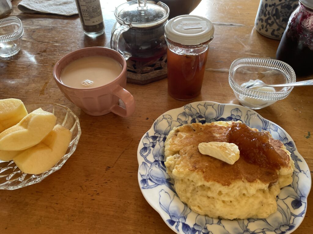 オンライン講座は夜からなので、朝は余裕です。ホットケーキには栗が入っており、それに無花果のジャムをゴッソリ振りかけて食べてます。オンライン講座は4回目が無事終了しました。