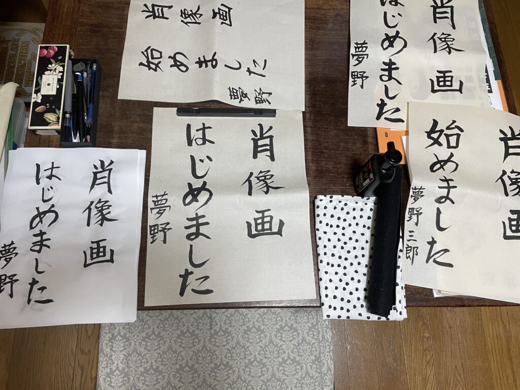春雨で少し寒くなりました。夢野のアトリエで張り紙をするシーンがあり久々に書道。10枚ほど書いていてだんだんマシになりもうこれ以上書けんし上手くてもしょうがないよ画家だから。という心境になりもうこれで完成とします。