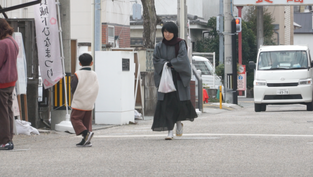 長崎街道を闊歩する画家の夢野三郎のシーンからスタートしました。佐賀城下ひな祭りで賑わっていましたが、意外と違和感なく歩けたのではないでしょうか。ちょっと寒かったのですが羽織袴の着付けも成功!