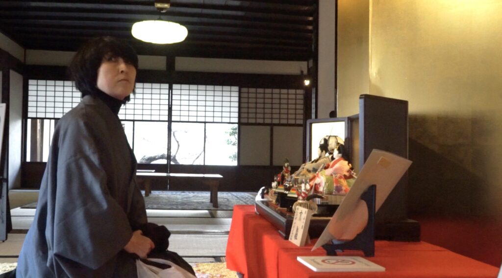 お雛様に向き合う夢野。旧古賀家のひな祭り。長い歴史の中で大切にされているお雛様。その世界に夢野は圧倒されています。どのくらいの時間が流れて、今この時に至ったのだろうかと。